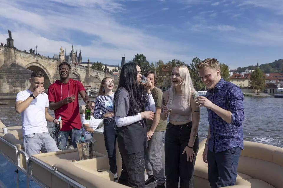 Naši zkušení, licencovaní kapitáni a barmani jsou fantastickou společností. Mluví výborně anglicky a jsou znalými průvodci, kteří znají Prahu jako své boty.