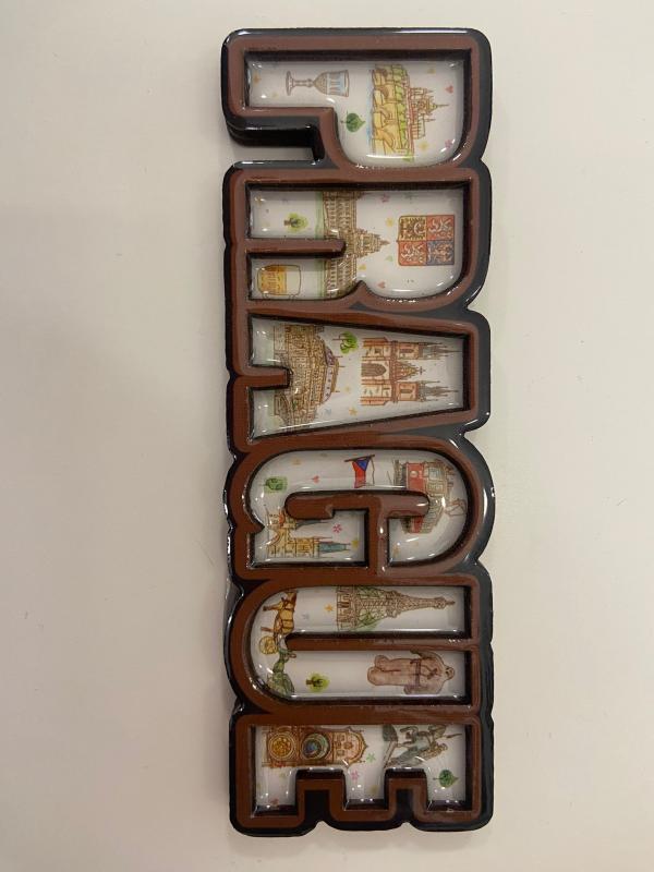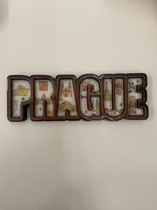 El imán muestra aquello por lo que Praga es famosa. Praga es famosa por sus lugares históricos, su transporte y su cerveza.